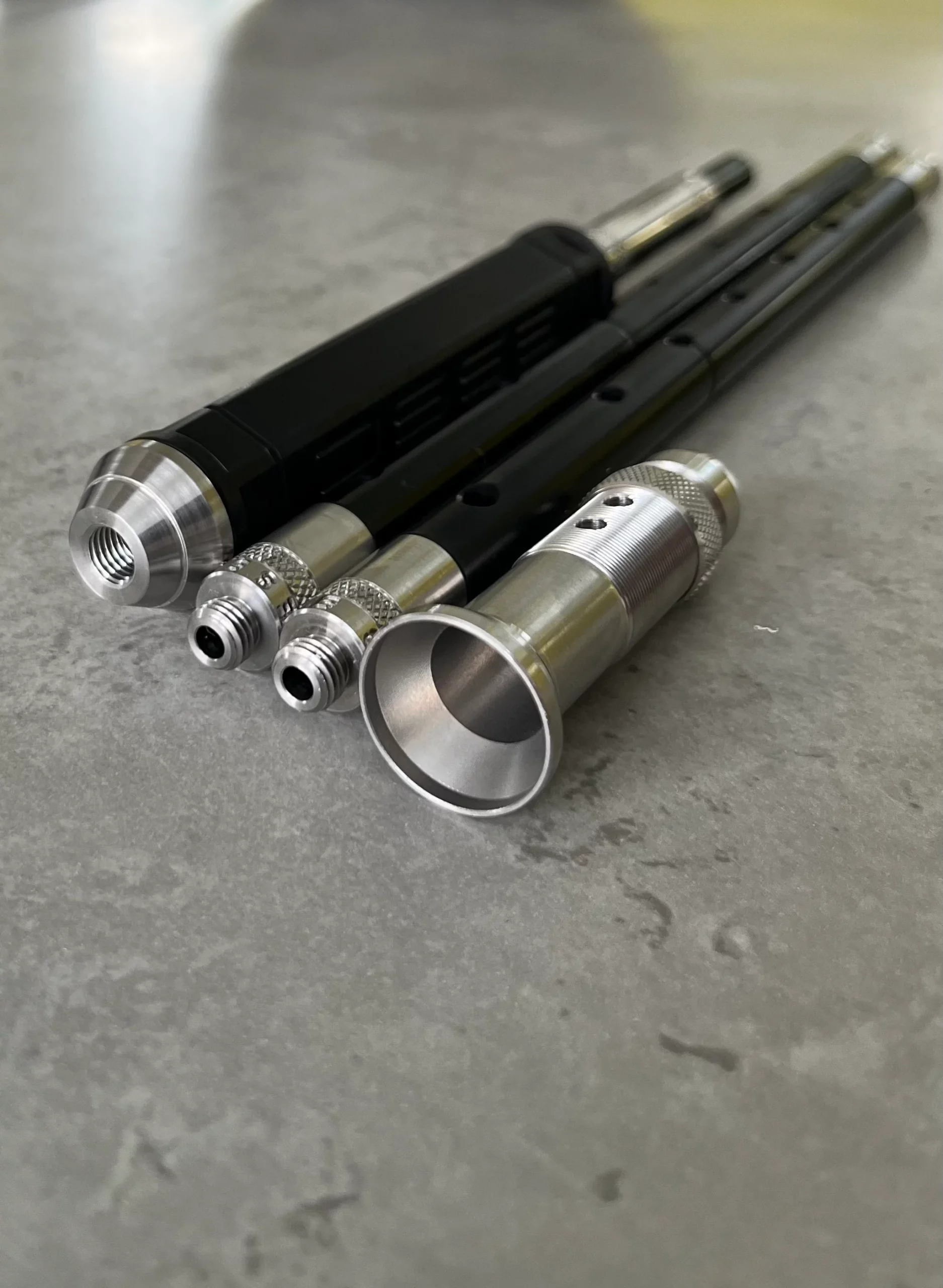 Finished in Black Anodised Aluminium & Stainless Steel, it comes with two stems which are based on A and B♭.