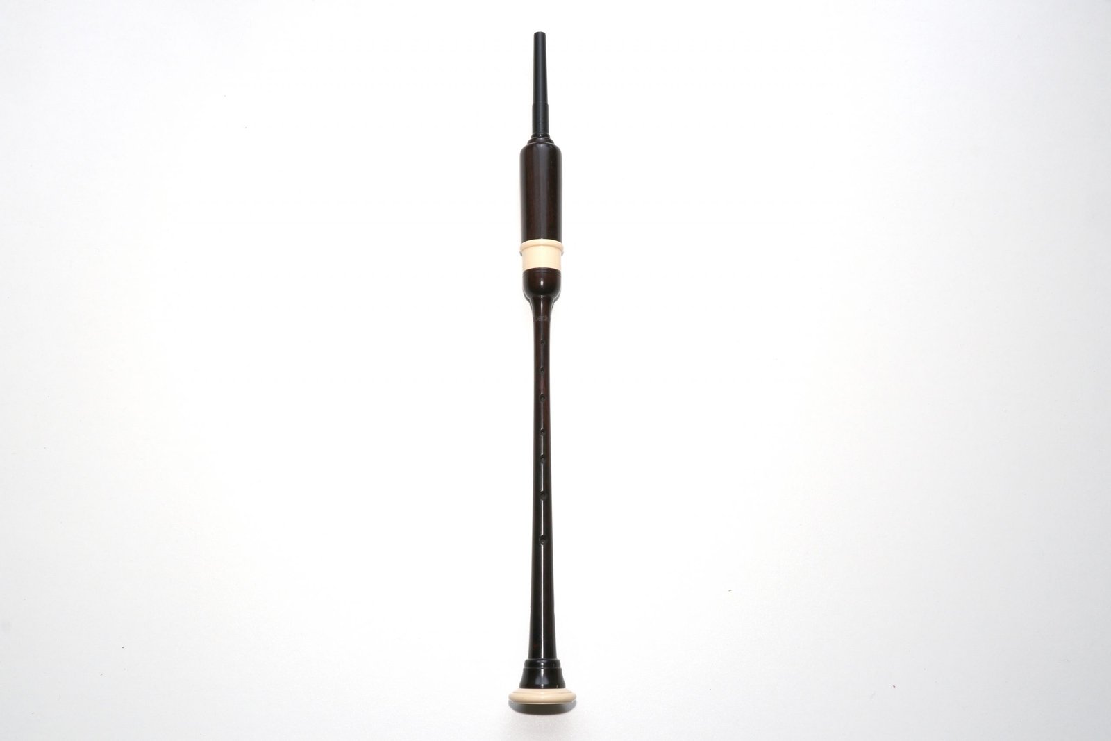 Long african blackwood practice chanter incorporating a plastic lined top to prevent against the strains and stresses of moisture, fitted with artificial ivory ferrule and sole. Comes ready to play, complete with reed.